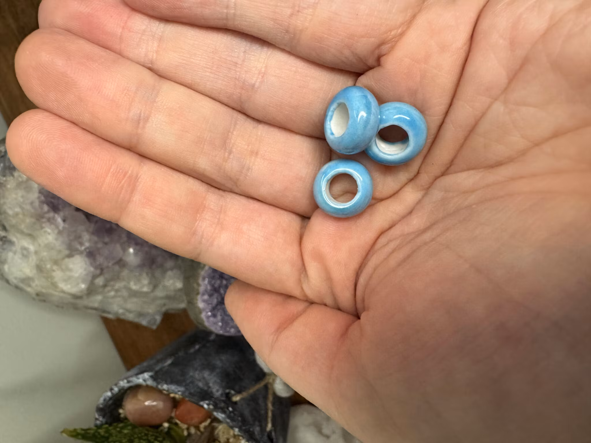 Dreadsmycke i blåmålat porslin. Dreadsmycken är ett superenkelt sätt att piffa till dina dreads eller varför inte använda dom för att gömma ojämnheter i dreadlocksen!