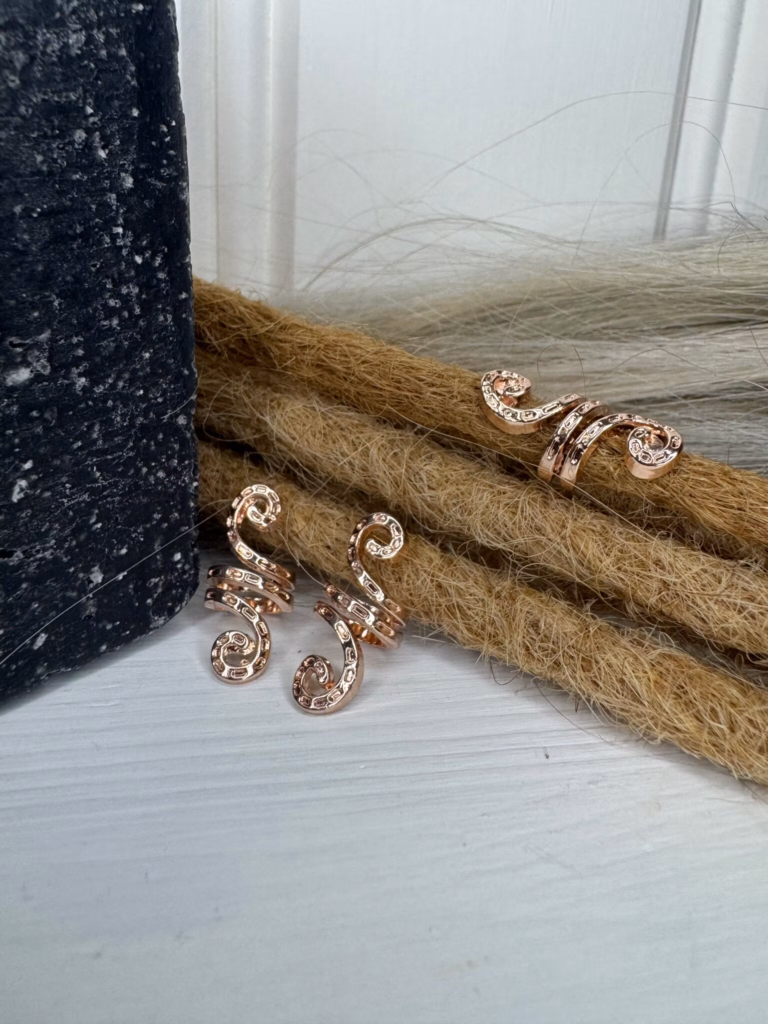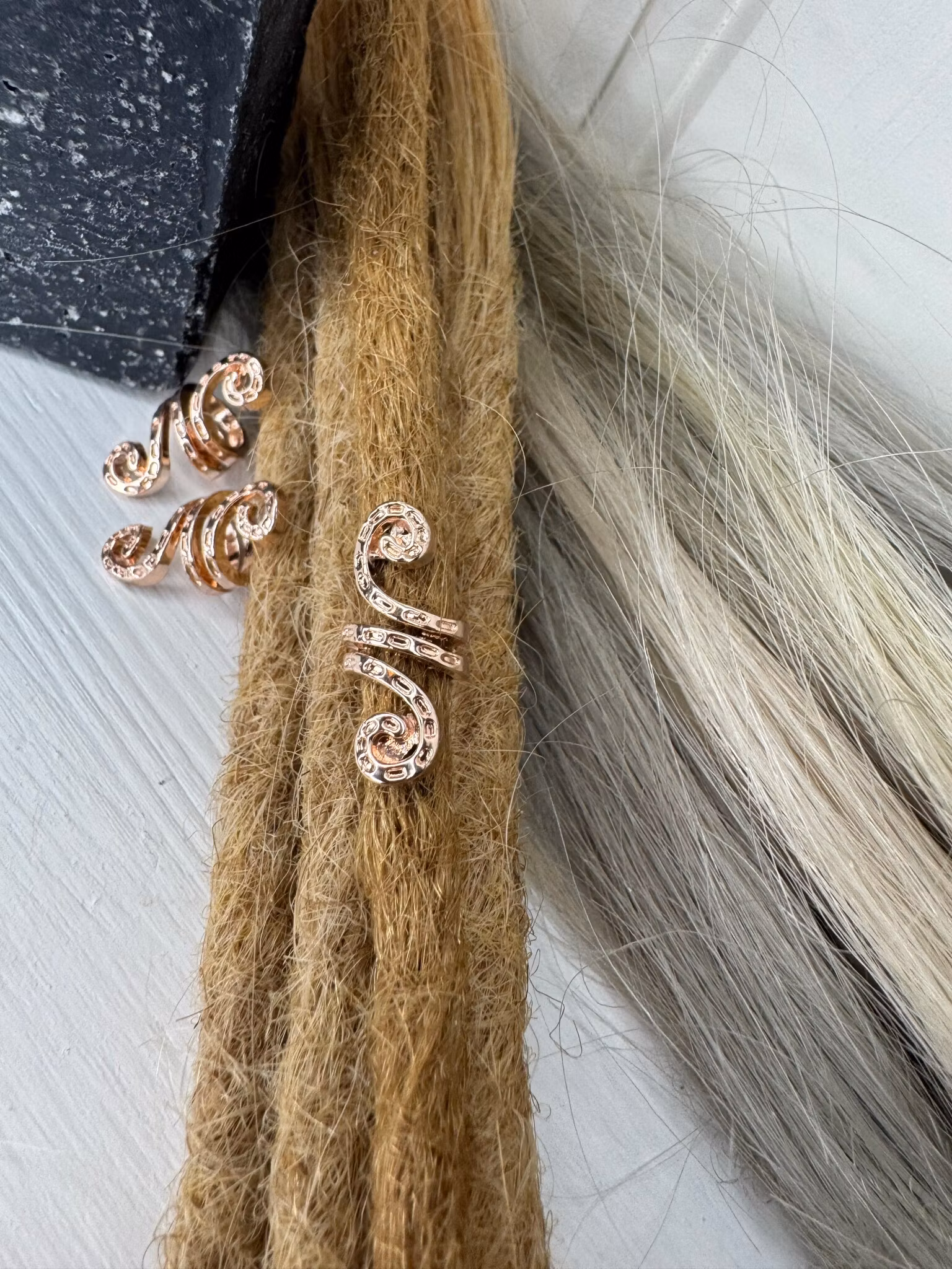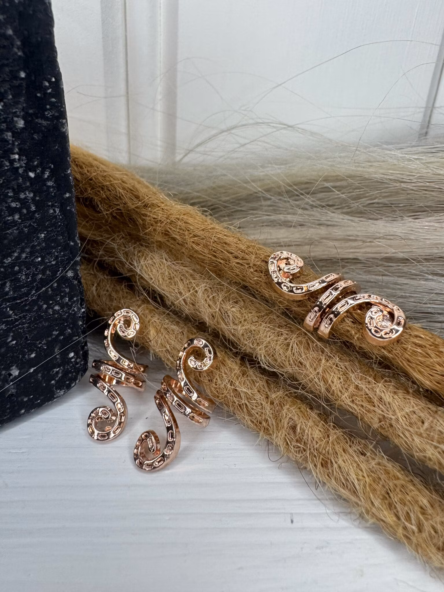 Snygga dreadspiraler i Roséfärg att sätta i dina dreadlocks.Säljs styckvis2,1 cm höginnermått 0,7 cm (7mm)