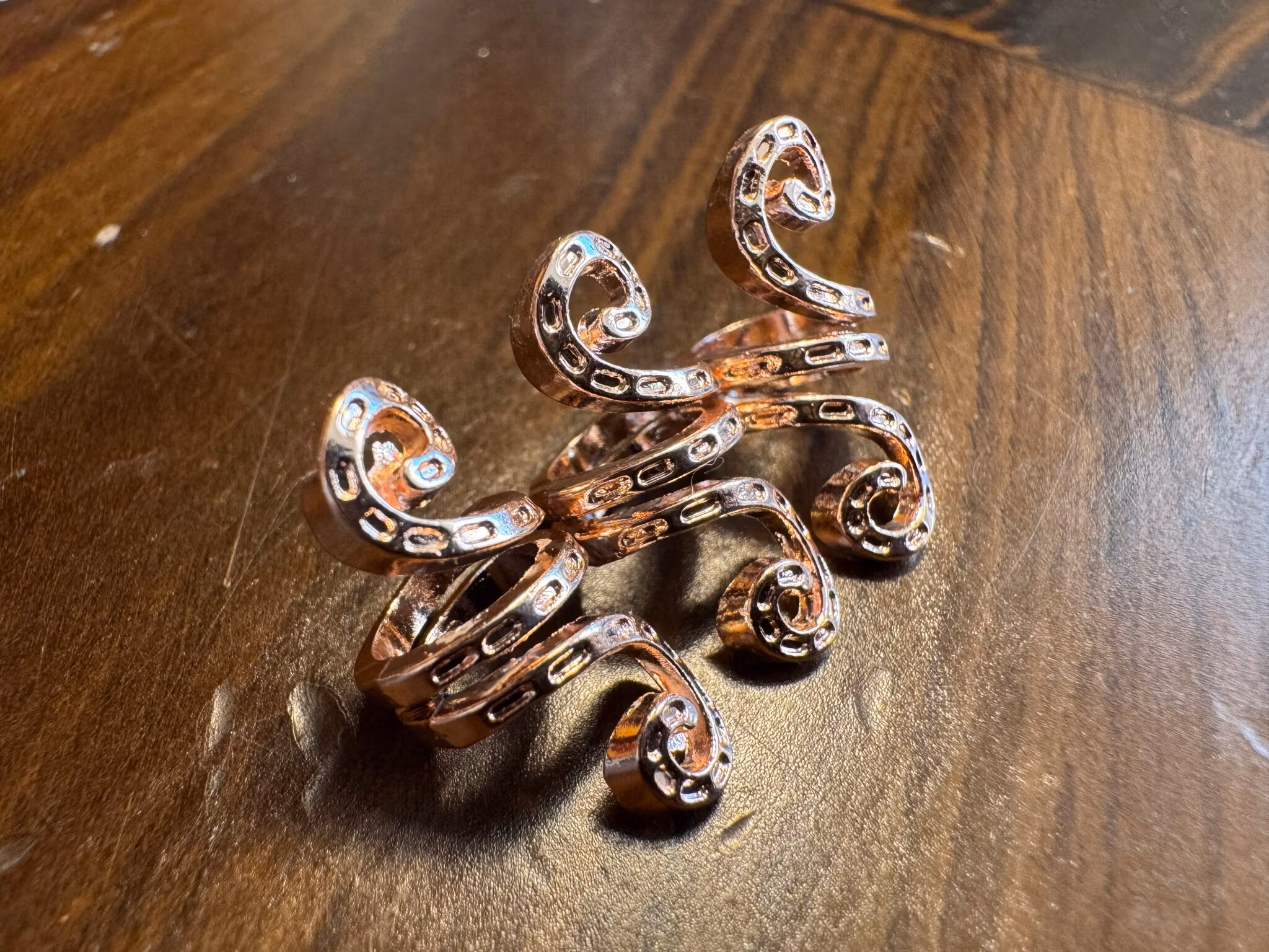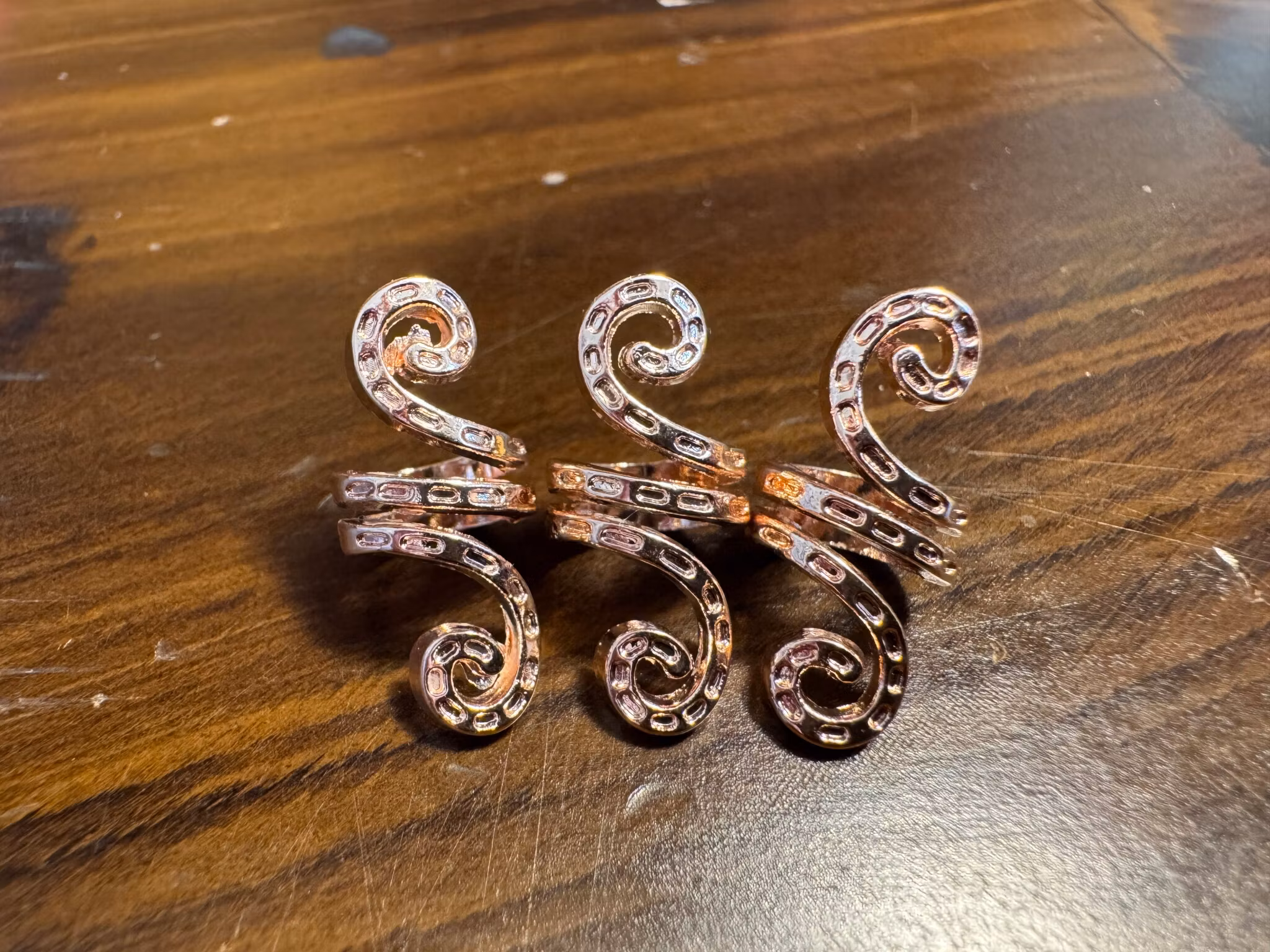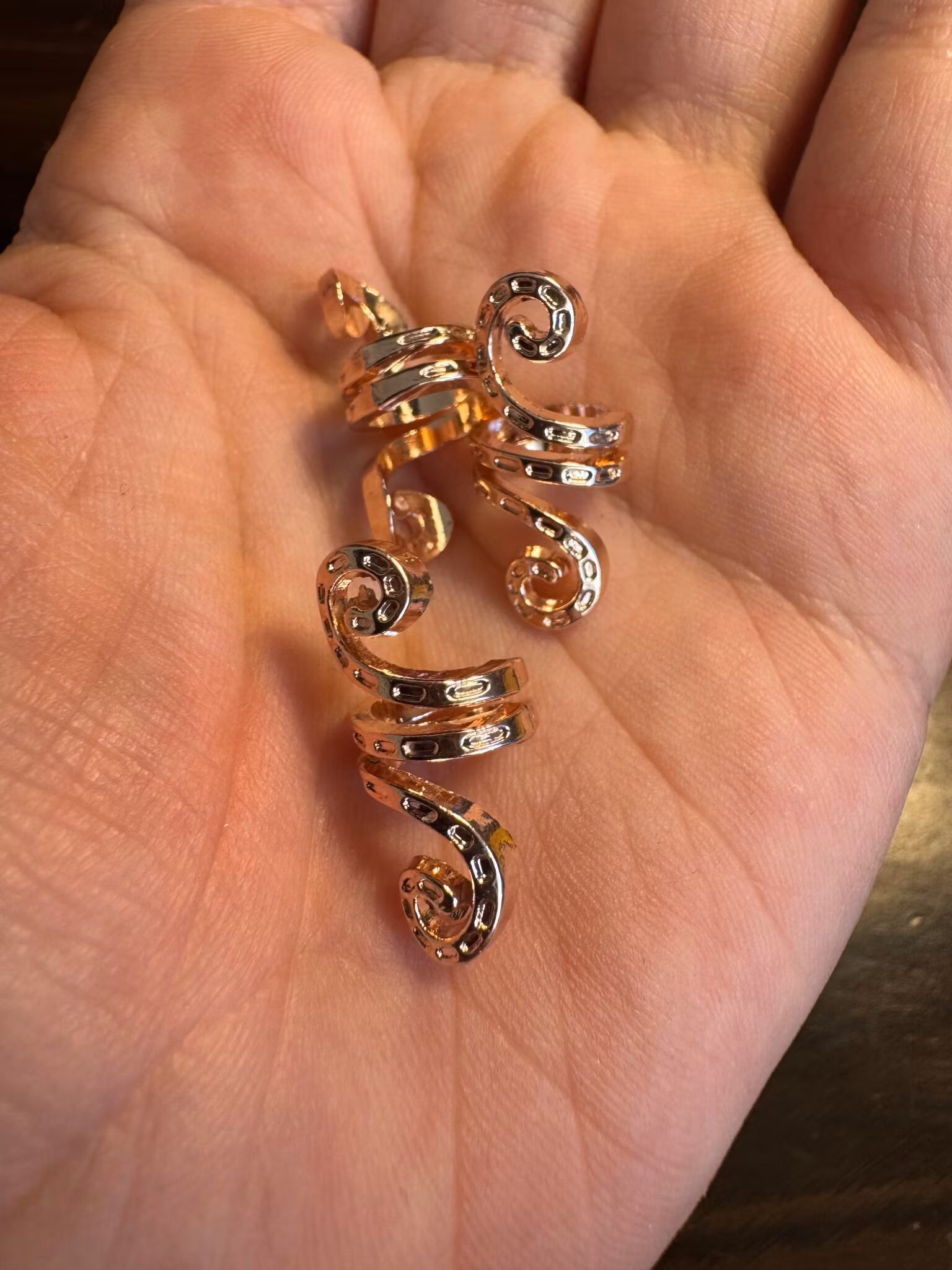Snygga dreadspiraler i Roséfärg att sätta i dina dreadlocks.Säljs styckvis2,1 cm höginnermått 0,7 cm (7mm)