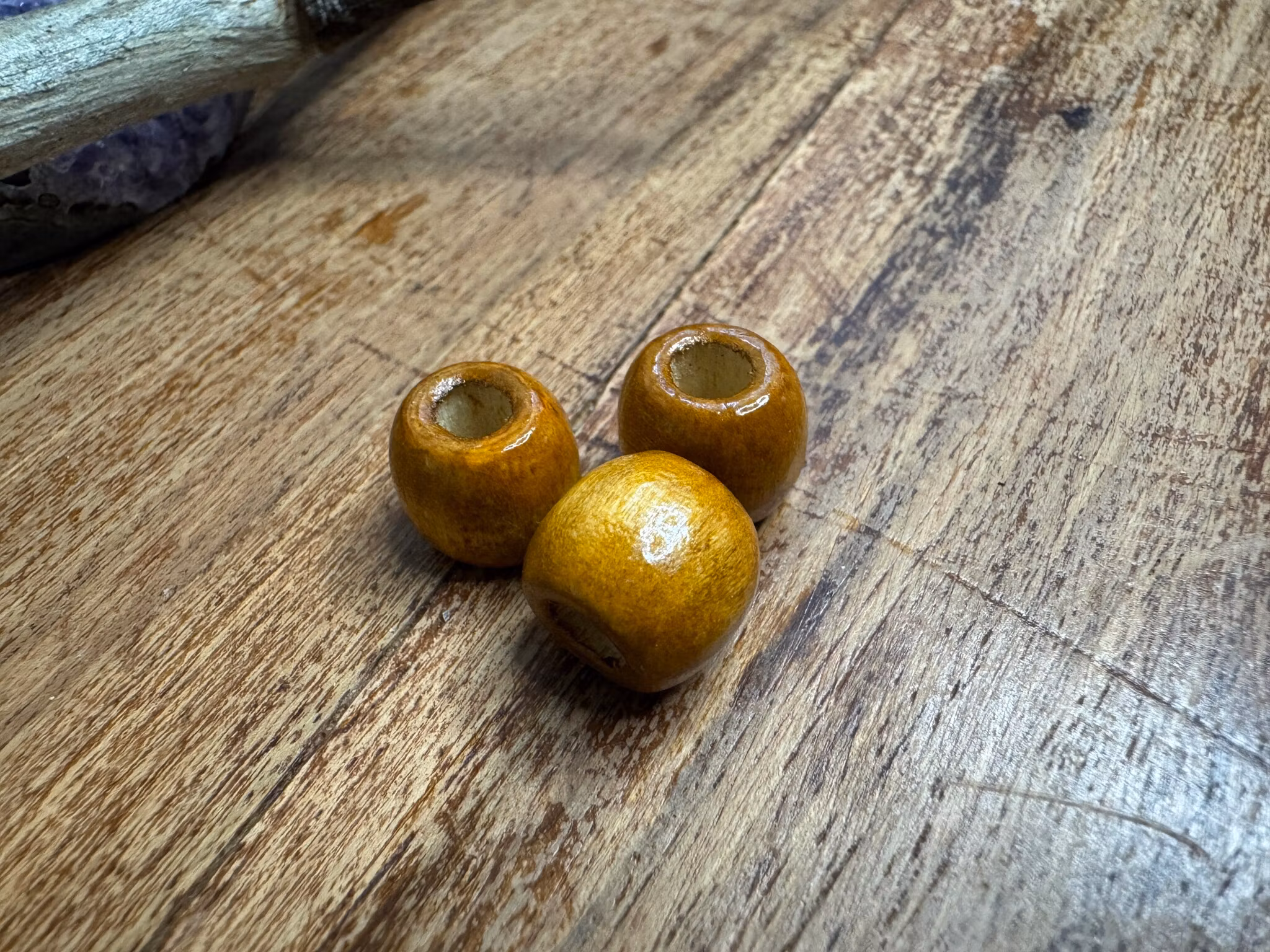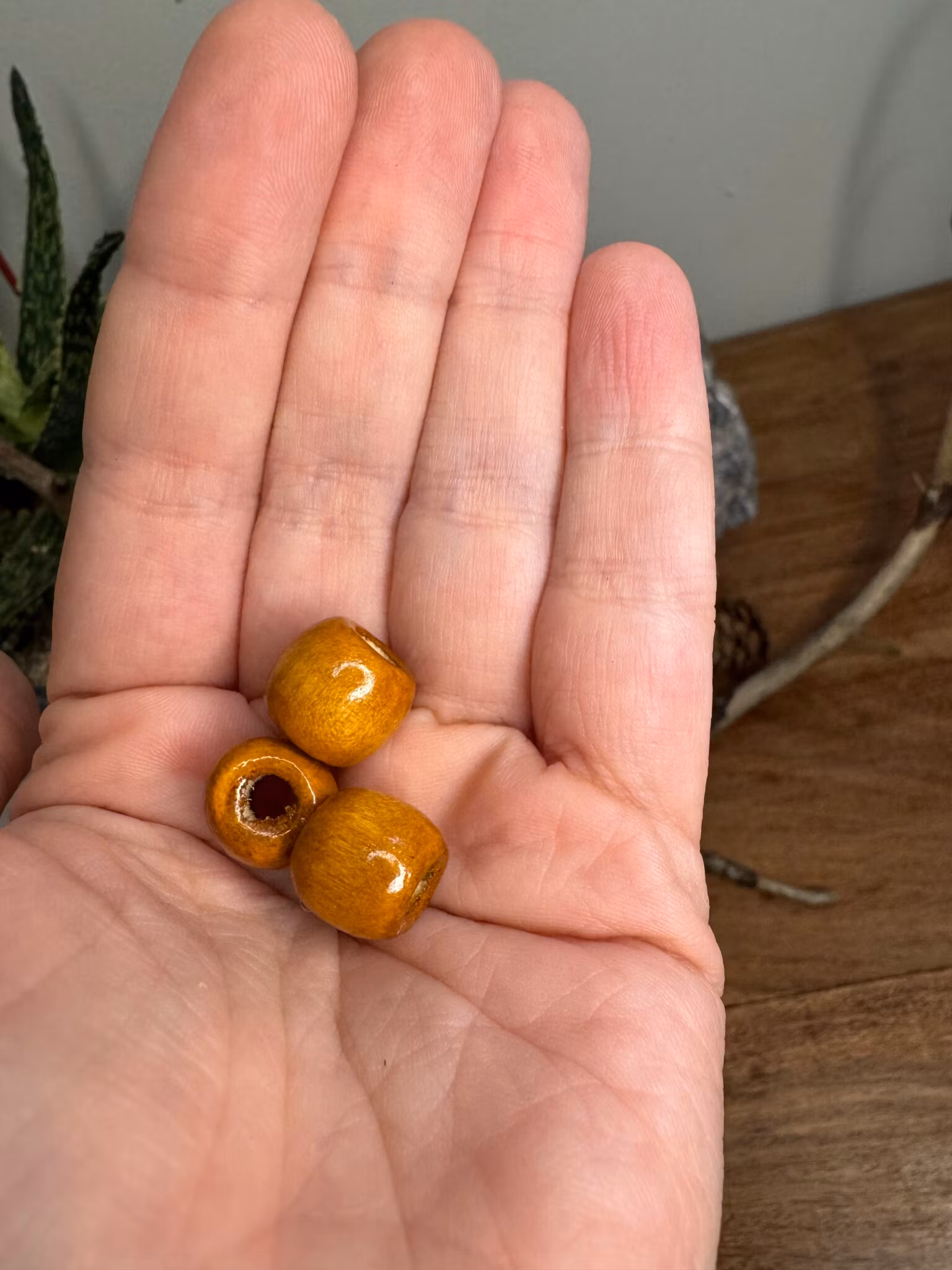 Dreadsmycke i gul/brunmålat trä. Ett superenkelt sätt att piffa till dina dreads eller varför inte använda dom för att gömma ojämnheter i dreadlocksen!