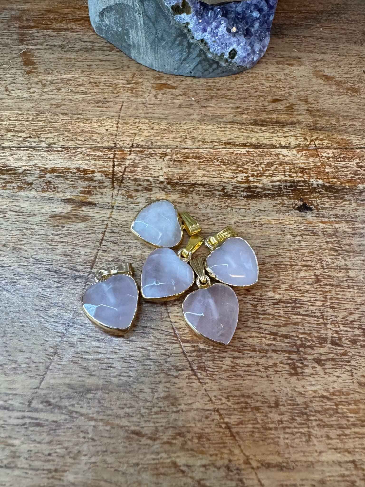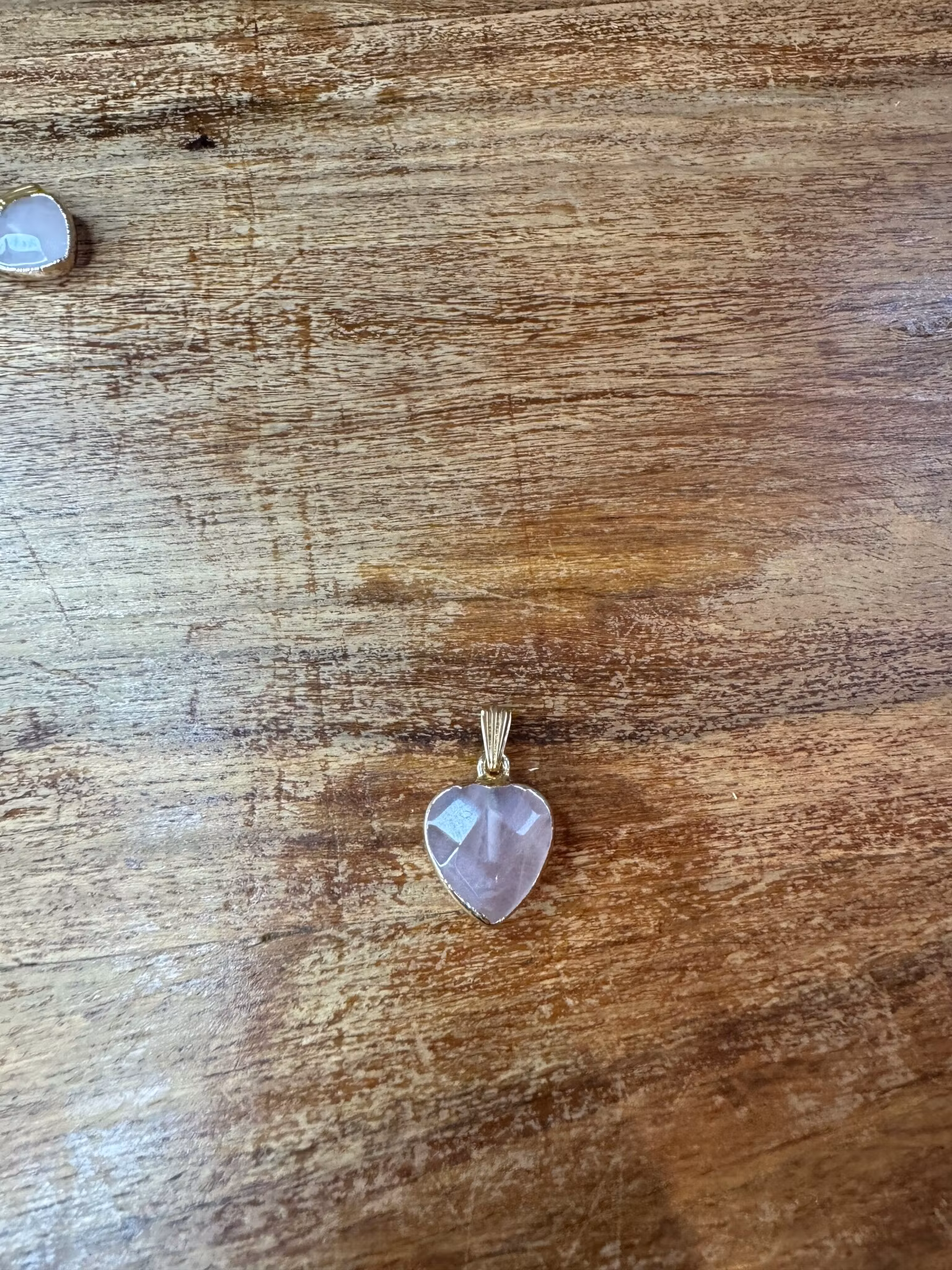 Polerat rosenkvarts hjärta med guldpläterat hänge.