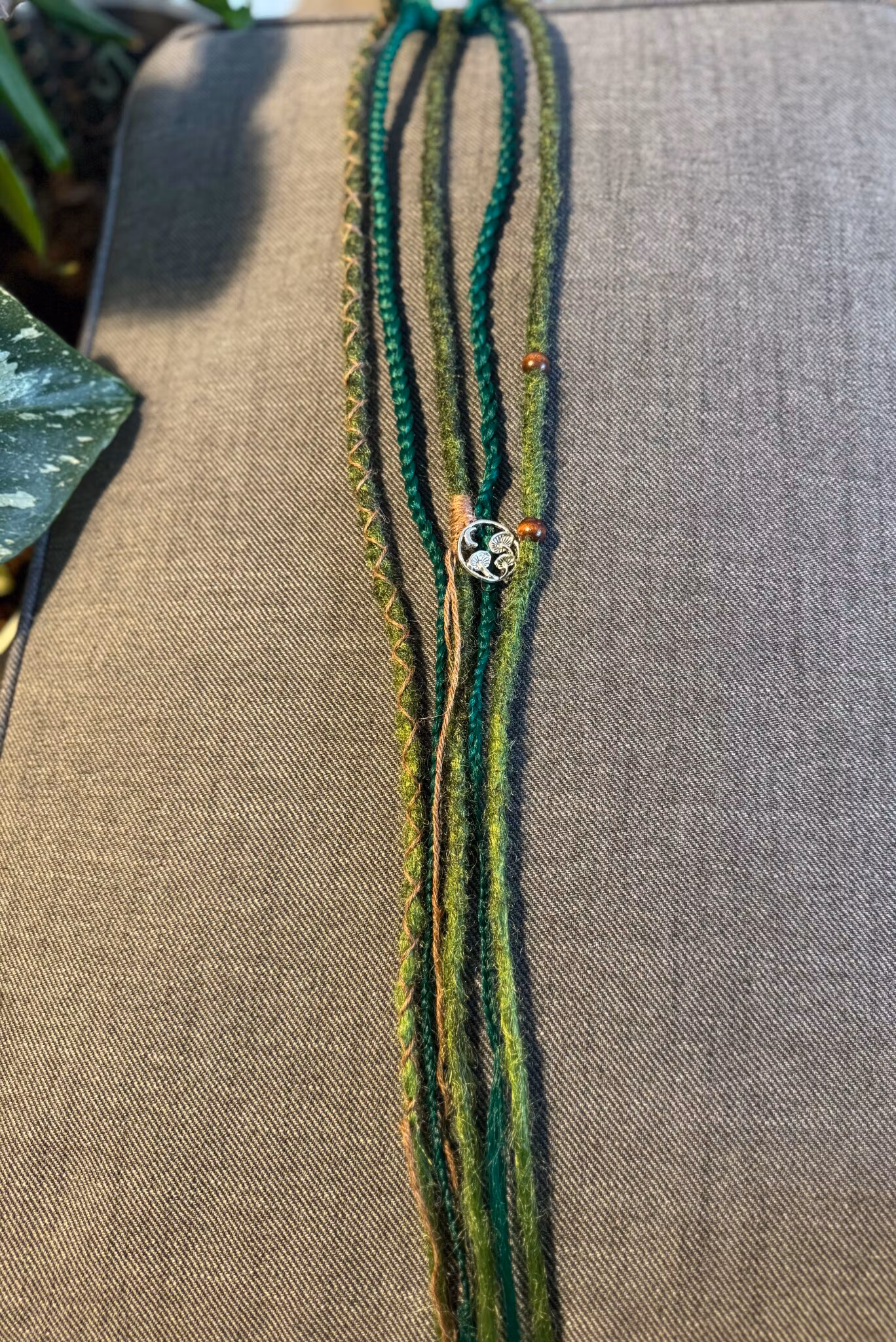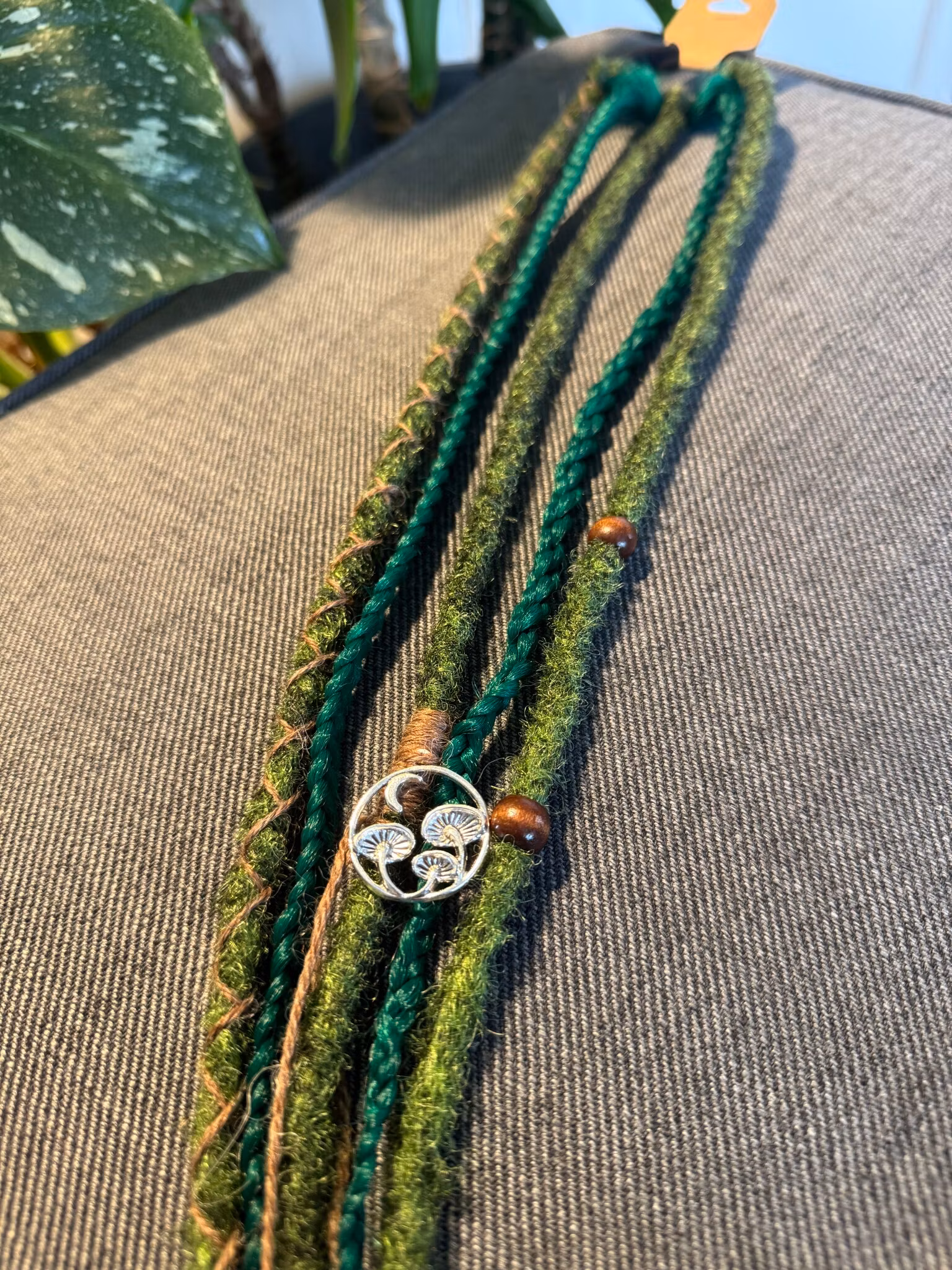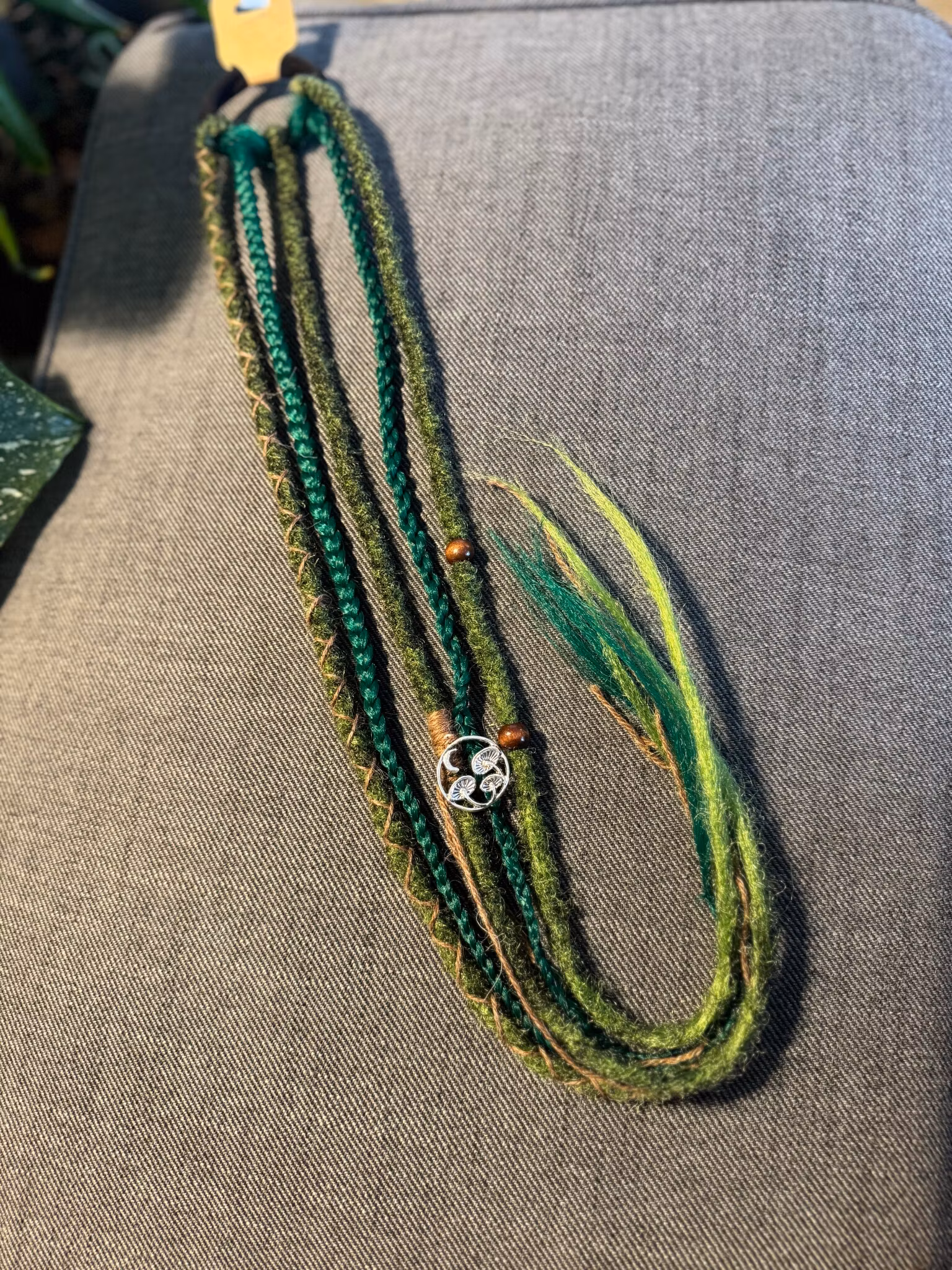 Hårsnodd med Dreadlocks och flätor, i syntetiskt hår som du enkelt fäster i ditt eget hår och kan ta i och ur när du själv vill.Färgerna går i grönt med bruna d