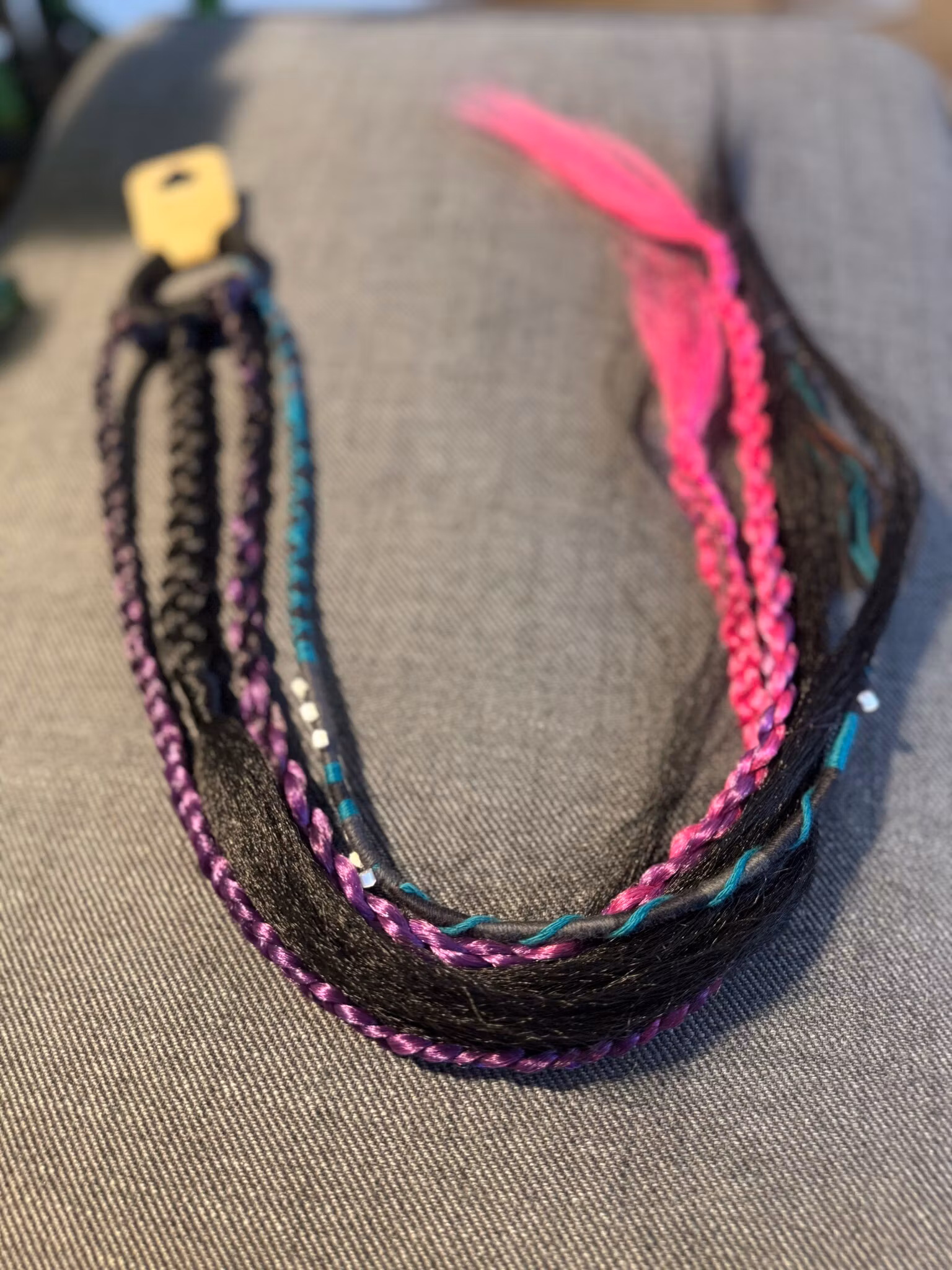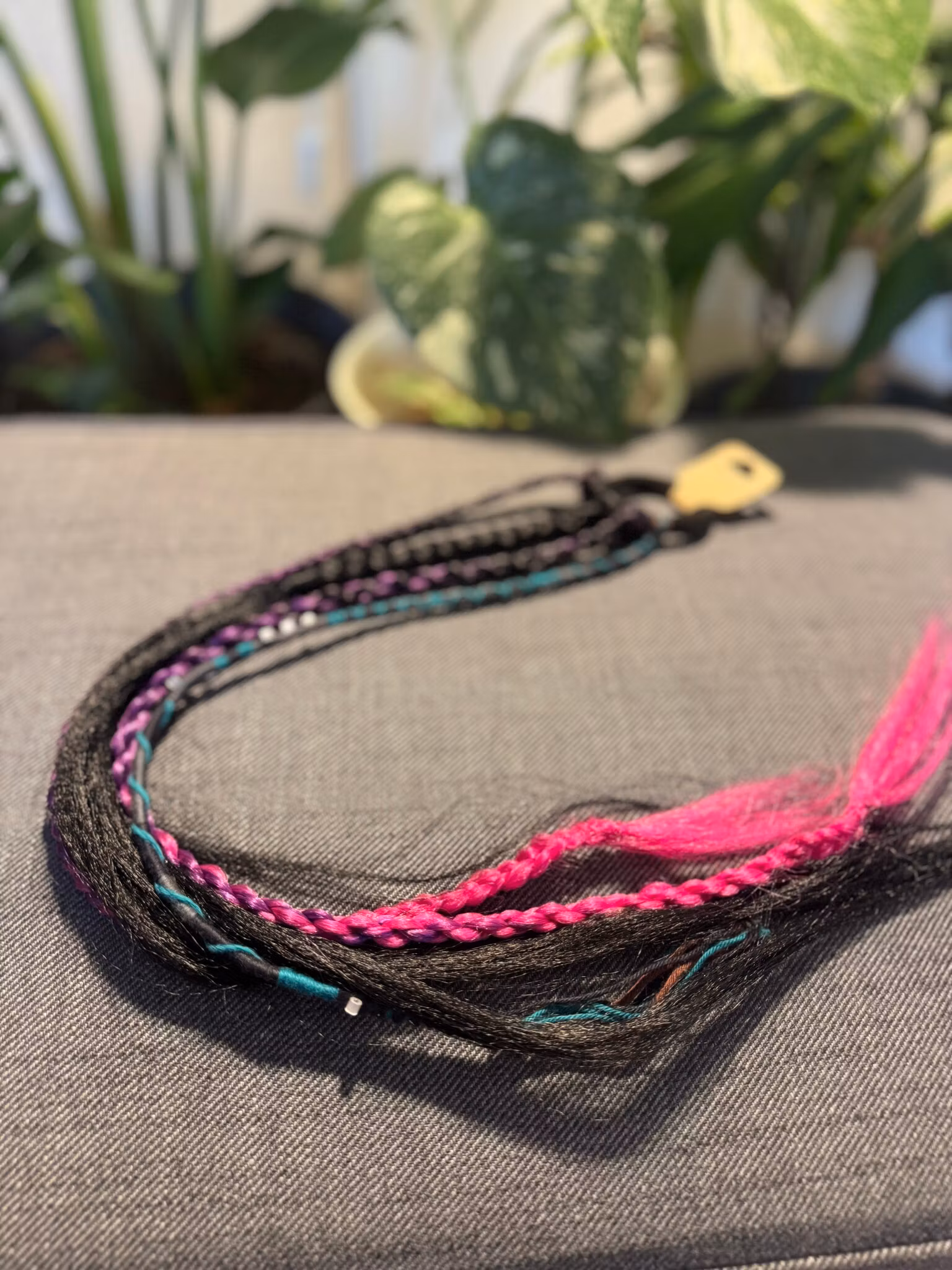 Hårsnodd med Dreadlocks och flätor, i syntetiskt hår som du enkelt fäster i ditt eget hår och kan ta i och ur när du själv vill.Färgerna går i Svart-Lila-Rosa m