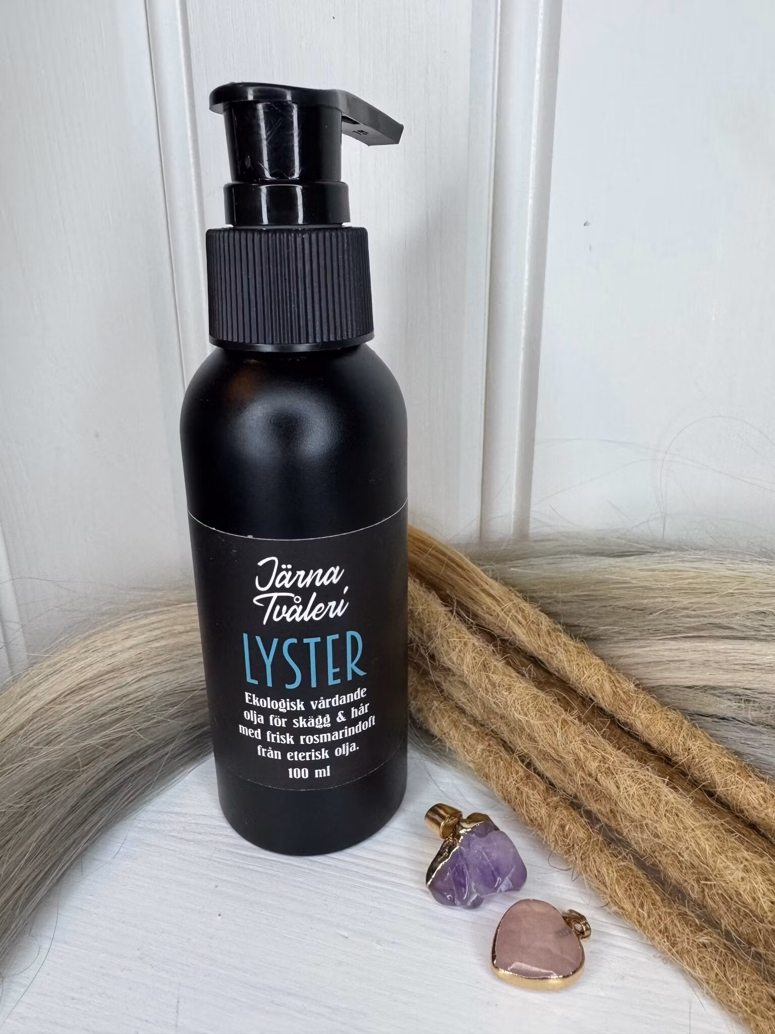Lyster är en ekologisk hårolja, med enbart naturliga ingredienser från Järna Tvåleri! Oljan ger mjukhet, lyster och frisk doft av rosmarin till dina dreadlocks,