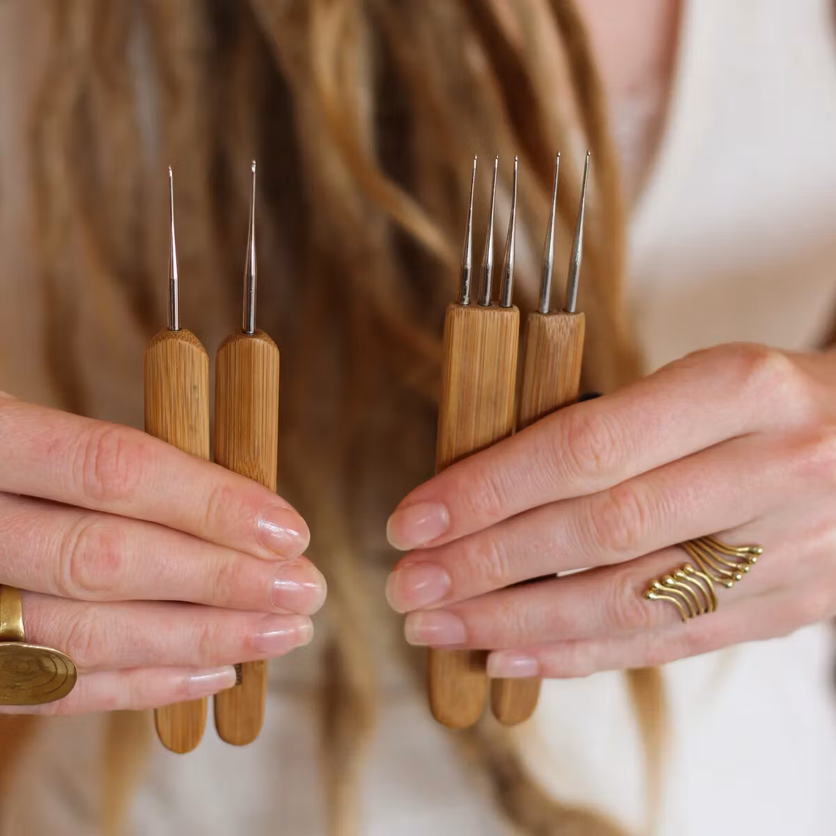 Denna virknål är perfekt att ha hemma för att själv kunna underhålla dina dreadlocks mellan besöken hos din dreadlockfrisör. En mycket smidig lösning när du har några lösa hårstrån som behöver guidas tillbaka in i dina dreads.