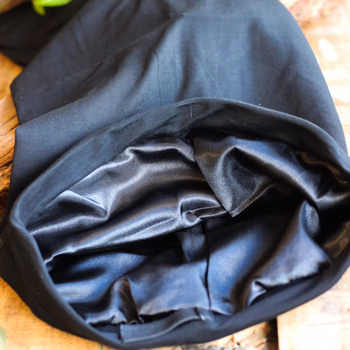 Denna långa svarta tub i mjuk bambu med foder av satin skyddar dina dreadlocks medan du sover. Den minskar friss, lösa hårstrån och ludd i dina dreadlocks.