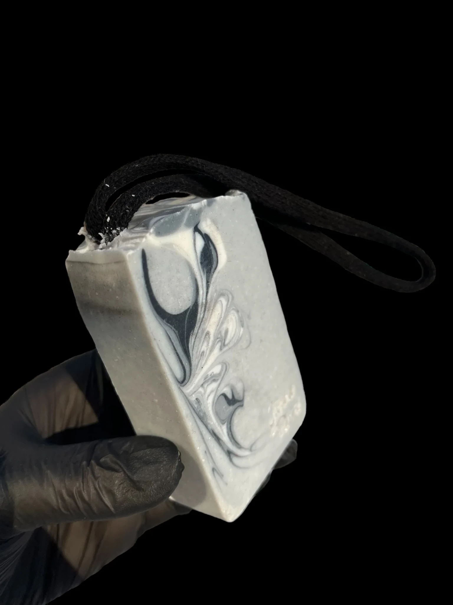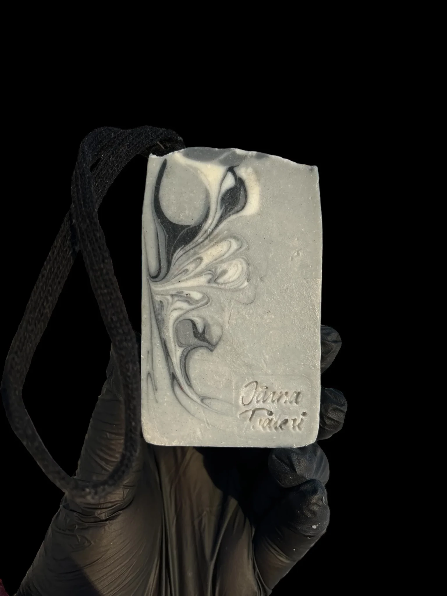Lite kaolinlera och salt är tillsatt för att ge en skön tvätt upplevelse. Aktivt kol är tillsatt för att tvätta extra rent och ge tvålen nyanser av grått och svart.