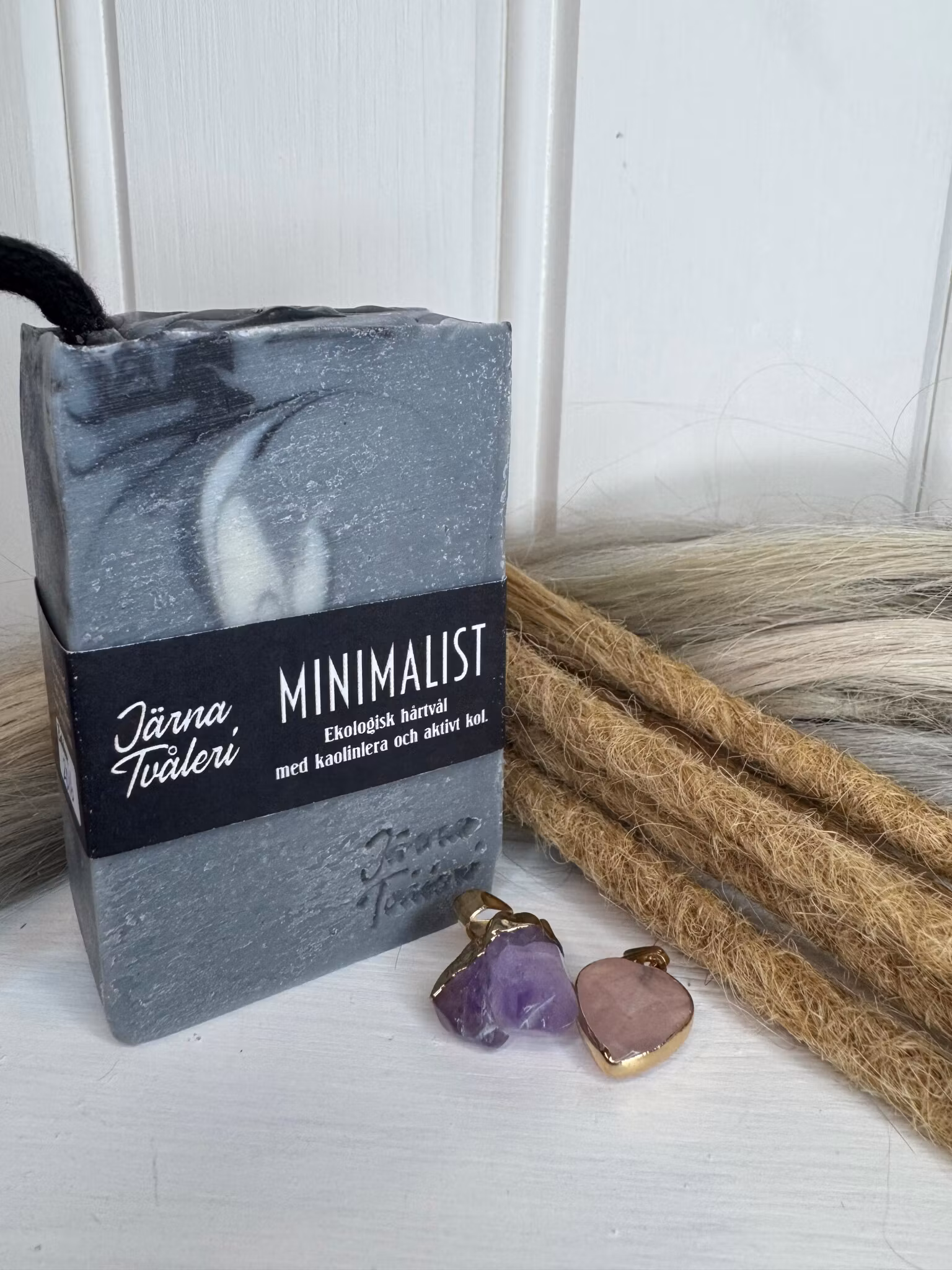 Minimalist ingår i en helt ny kollektion med hårtvålar som tagits fram av Järna Tvåleri för dem som letar efter en tvål att tvätta håret med (aka schampotvål eller hårtvål) som lämnar så lite rester kvar i håret som möjligt. Håret ska alltså inte ha någon beläggning kvar efter tvätt och inget balsam eller surskölj är nödvändigt.
