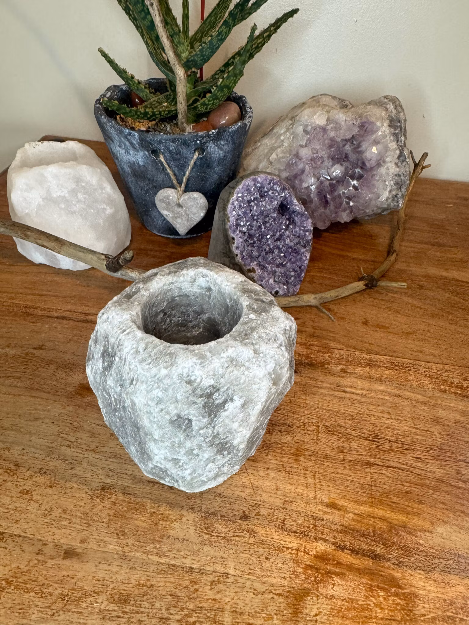 Vacker ljuslykta i naturlig svart/grå saltkristall från Himalaya. Lyktorna kommer från naturen och därför är var och en av dem helt unika. Naturliga färgskiftningar, ojämnheter och sprickor gör att ingen är helt den andra lik.
